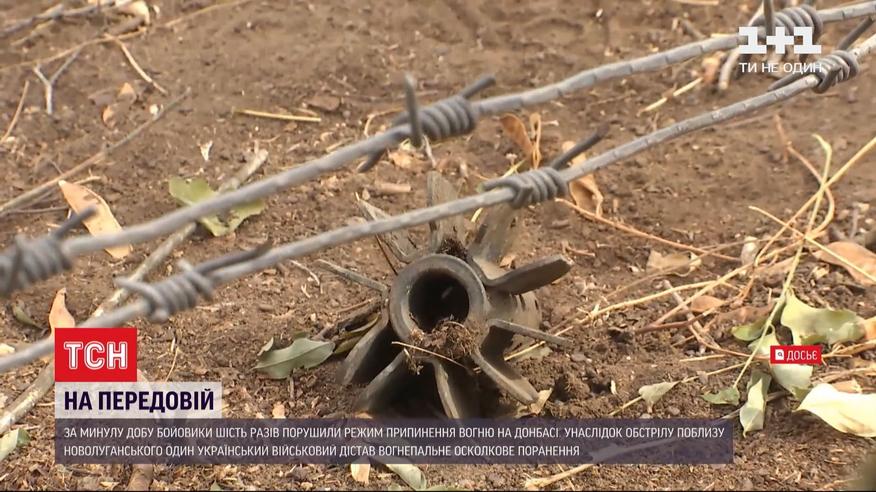 Бойовики вкотре порушили режим тиші на Донбасі. Унаслідок цього один український військовий отримав вогнепальне осколкове поранення. Його доправили до медзакладу, де нині надають необхідну допомогу. Загалом за минулу добу штаб операції ООС зафіксував шість обстрілів. Окупанти застосували зброю поблизу Водяного, на околиці Авдіївки й у районі Мар'їнки та Гнутового. А також обстріляли позиції наших військових поблизу Новолуганського.
