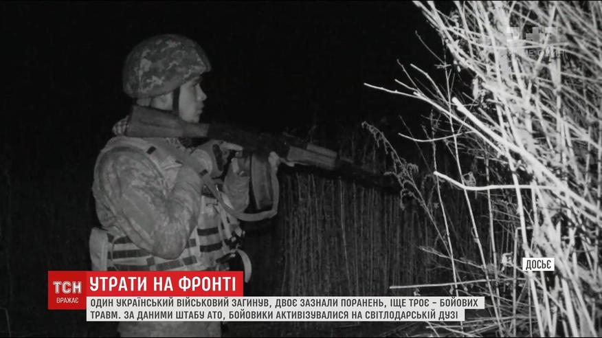 На фронті один український військовий загинув, троє поранені і ще двоє травмовані. Про це повідомляє штаб АТО. Попри оголошене п'ять днів тому перемир'я, бойовики з мінометів та кулеметів гатять по українських позиціях. Найгарячіше - на Луганському напрямку. Зокрема, на Світлодарській дузі напередодні надвечір бойовики дві години вели обстріл поблизу селища Луганське.