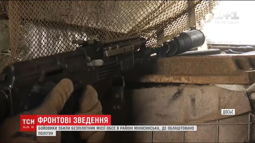 Окупанти ведуть вогонь уздовж усієї лінії фронту. Б'ють із мінометів великого калібру, гранатометів та стрілецької зброї. На окупованій території збили безпілотник ОБСЄ. Це сталося під Міусинськом, де окупанти облаштували полігон. Інспекторам спостережної місії бойовики наказали забратися геть. Під час попередніх польотів у цьому районі ОБСЄ зафіксувала 10 танків.