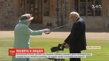 Допомагав медикам - став лицарем. Британський ветеран Том Мур сьогодні отримав титул від королеви Єлизавети Другої. Урочисту церемонію провели у Віндзорському палаці. І, хоча через карантин монархиня тимчасово утримується від публічних заходів - для національного героя зробили виняток. Єлизавета Друга посвятила Тома Мура у лицарі за старовинною церемонією - і традиційним мечем. Утім, церемонія дещо зазнала змін - сторічний ветеран на коліна перед монархинею не ставав - бо й так тримався на ногах завдяки ходункам. Саме з ними він спромігся виконати своїм подвір'ям сто кіл - і цим зібрати понад 33 мільйони фунтів для медиків на передовій пандемії.