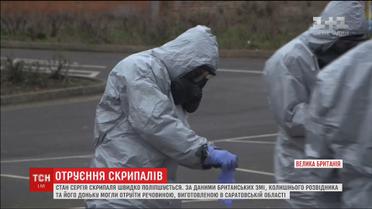 Екс-розвідник уже не в критичному стані, про це щойно повідомили його лікарі. Водночас, британські спецслужби встановили: нервовопаралітична речовина "Новачок" була виготовлена у Саратовській області Росії. Сьогодні копи підтвердили, що в домі знайшли двох загиблих морських свинок, а кота відвезли в лабораторію, щоби взяти аналізи. Тварина мучилася, і її довелося приспати.