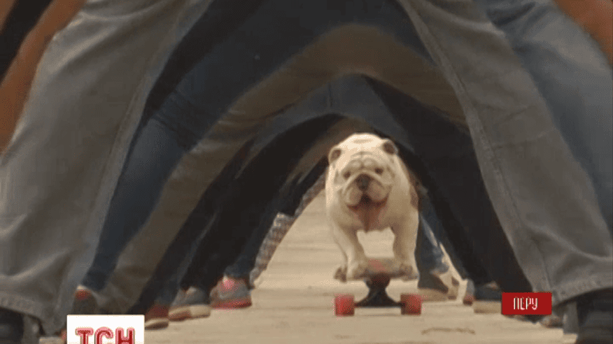 Бульдог на кличку Отто проїхався на скейтборді під ногами 30 людей