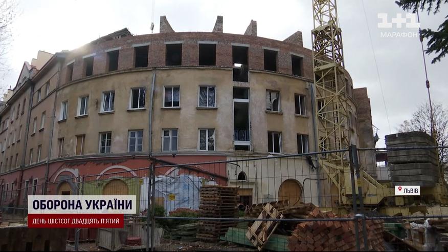 Були зруйновані цілі поверхи: у Львові відновлюють будинок, у який влучила російська ракета