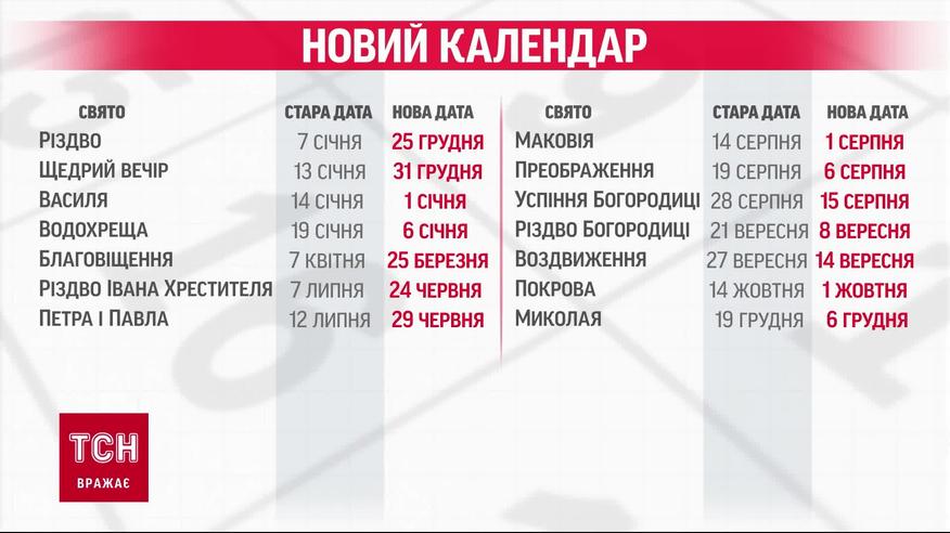Архієрейський собор Православної церкви України 24 травня ухвалив рішення про перехід на новоюліанський календар. За це проголосували абсолютною більшістю - лише один з учасників собору був проти, ще один - утримався. Далі реформу затвердить Помісний собор, це станеться в липні. Отже, відтепер зміняться дати святкувань більшості церковних свят, окрім тих, що прив'язані до Великодня. У церкві кажуть - уже ближчим часом звернуться до влади з проханням привести у відповідність до нового календаря дати державних свят. Запрацює він від 1 вересня, з початком нового церковного року.