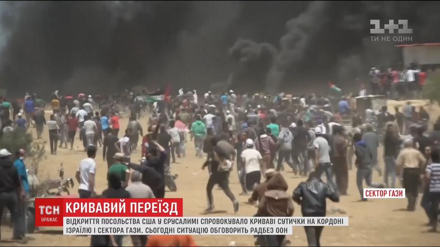 Криваві сутички на кордоні Ізраїлю і Сектора Газа сьогодні обговорюватимуть на Раді безпеки ООН. Екстрену зустріч скликають за ініціативи Кувейта. Кровопролиття спровокував урочистий переїзд американського посольства до Єрусалима. Тисячі палестинців, які теж вважають місто своїм, зібралися на кордоні на акції протесту. Вони палили шини і кидалися камінням. Ізраїльська армія відтісняла протестувальників кулями. У результаті - загинули 55 людей.