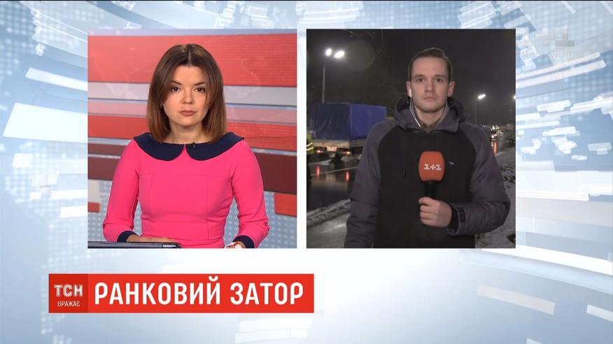 Це сталося в районі Кирилівської церкви в сторону центру Києва. Затор утворився у обидва боки. Зупинилося приблизно 5-6 тролейбусів. Дроти лежать просто на дорозі. Водіям радять завчасно планувати маршрути.