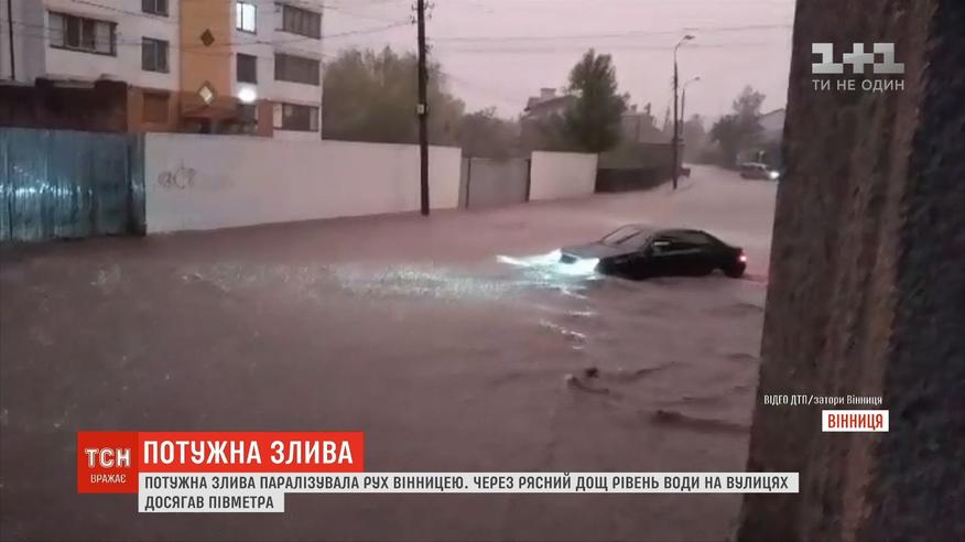 Через рясний дощ рівень води на вулицях Вінниці досягав півметра