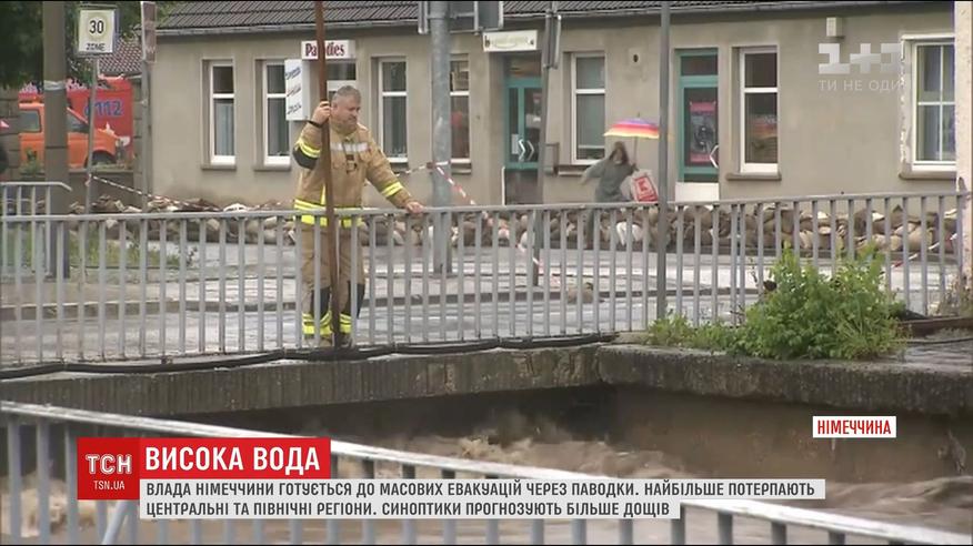 Після тривалих дощів річки вийшли з берегів, дороги і вулиці затопило. Найбільше від паводків потерпають у центральній і північній частині країни. У місті Гослар оголосили надзвичайний стан, коли весь історичний центр залило водою. Синоптики прогнозують подальші дощі і пояснюють катаклізми глобальним потеплінням.