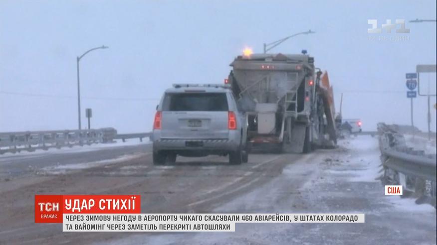 Чикаго загрожує крижаний дощ, після якого дороги стануть слизькими, і заметіль. Через них залишити місцеве летовище не змогли 460 авіарейсів. Штати Колорадо та Вайомінг потерпають від заметілі - снігові кучугури зупинили рух на кількох великих магістралях.