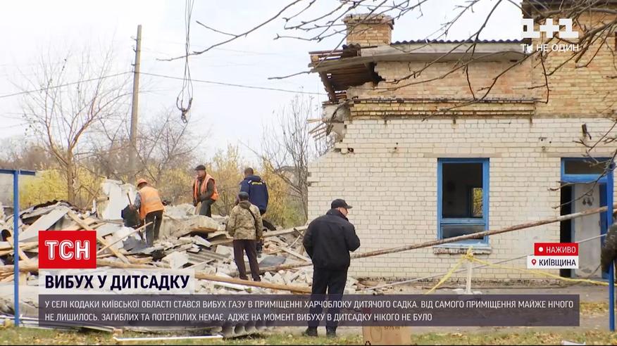 Витік побутового газу - попередня причина вибуху в дитсадку в селі Кодаки у Київській області, що стався напередодні. Зруйновано частину будівлі. На щастя - минулося без потерпілих. Подробиці – у сюжеті.