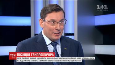 Генпрокурор Юрій Луценко про це заявив в ефірі ТСН.Тиждень у відповідь на звинувачення директора НАБУ Артема Ситника на адресу і ГПУ, і СБУ, що ці структури зірвали всі операції антикорупціонерів під прикриттям і викрили їхніх таємних агентів. Юрій Луценко поставив під сумнів залучення до спецоперації НАБУ із виявлення українських хабарників американського ФБР, бо закордонних слідчих, мовляв, офіційно не запрошували. Агентурну ж мережу керівництво НАБУ мало би обирати на відкритому конкурсі, вважає Луценко.