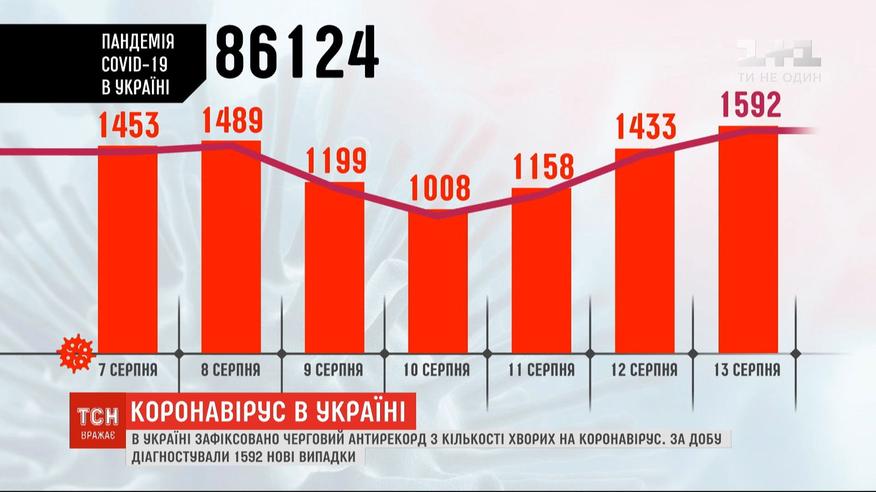 Черговий антирекорд: в Україні за добу виявили 1592 нових хворих на коронавірус