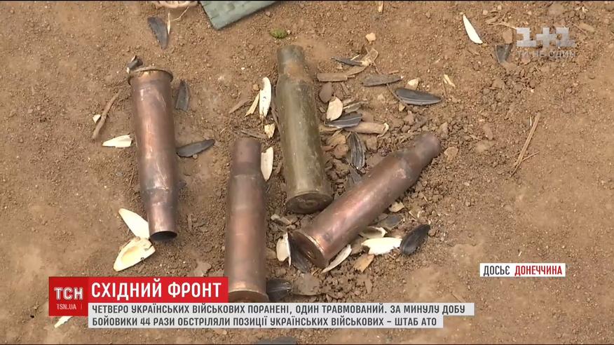 Четверо українських військових поранені, один – травмований під час виконання бойових завдань на східному фронті. Бійців вчасно доправили до лікарень, нині їхні життя поза загрозою. У штабі АТО нарахували майже півсотні ворожих обстрілів за минулу добу. Із мінометів бойовики гатять по позиціях українських військових неподалік Троїцького, Попасної, Водяного та шахти Бутівка.