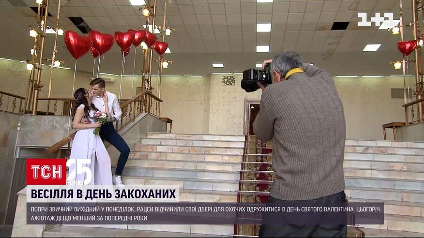 Побратися у День Закоханих. Хоч зазвичай понеділок у них вихідний, та сьогодні РАГСи відкрили свої двері для охочих одружитися в День святого Валентина. Чи багато молодят наважилися на такий відповідальний крок – дивіться.