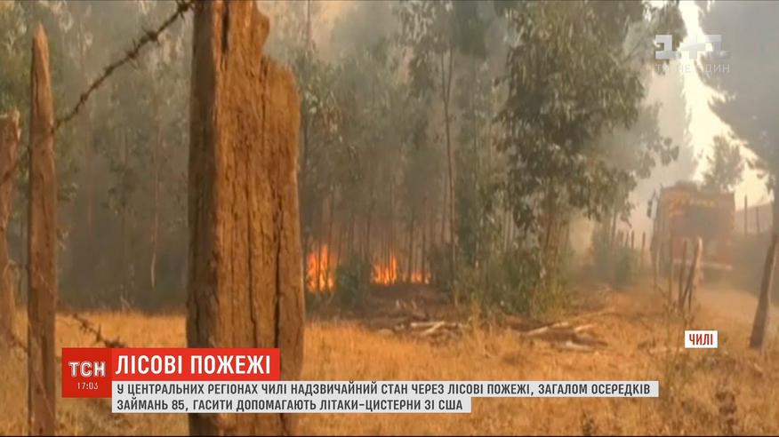 Вогнеборці нарахували 85 осередків займань, третину з яких загасити поки що не вдається. Режим надзвичайної ситуації діє у регіоні вже тиждень. Боротися зі стихією допомагають Сполучені Штати. Вони доправили до Чилі два великих літаки-цистерни.