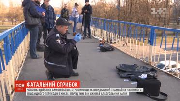 Чоловік укоротив собі віку, стрибнувши на трамвай з надземного пішохідного переходу