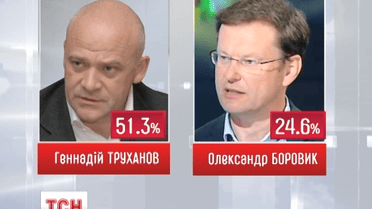 В Одесі в першому турі переміг чинний мер міста Геннадій Труханов. Він набрав трохи більше половини голосів, за Олександра Боровика - майже четверть. У Дніпропетровську призначений другий тур виборів.