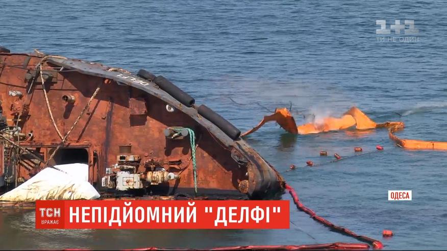 "Делфі" в Одесі ще надовго. Аварійний танкер, який уже вісім місяців лежить на пляжі, залишиться там щонайменше до осені. Його прибиранням тепер займається адміністрація морських портів. На це виділять 25 мільйонів державних гривень. Власнику підняти судно не вдалося.