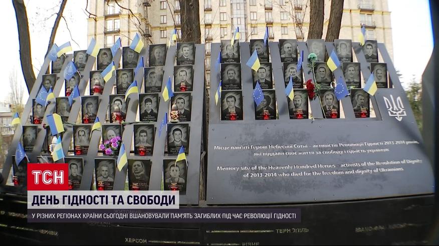Почесна хода, паперові янголи та гори квітів. У різних регіонах України 21 листопада вшановували пам'ять загиблих під час Революції Гідності. Окрім родин полеглих, віддати данину пам'яті героям прийшли сотні людей. Як це було - кореспонденти ТСН збирали інформацію.