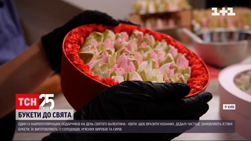 Що дарувати на день закоханих. Його невід'ємним атрибутом вважають листівку у формі серця із освідченням у найніжніших почуттях. А ще чимало заробляють продавці квітів. І букети останнім часом справді вражають своєю різноманітністю. Хоча б тому, що деякі з них можна з'їсти. Дивіться дослідження кореспондентів ТСН.
