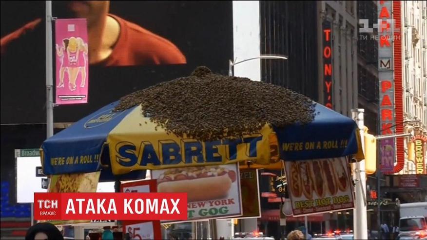 Тридцять тисяч комах десантувалися на парасольку кіоска з хот-догами у самому серці мегаполіса. Сталося це на сповненій туристами площі Таймс-сквер. Поліція була змушена перекрити прилеглі вулиці, аби комахи не напали на людей. Облога тривала, поки спеціаліст-пасічник не позбирав бджіл пилососом до відра і не вивіз їх подалі.