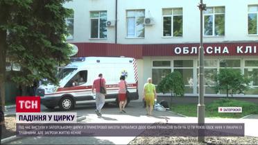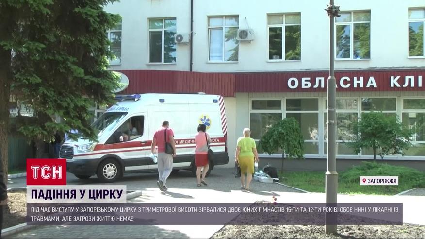 Зірвалися з триметрової висоти. Під час виступу двоє артистів Запорізького цирку, виконуючи гімнастичний номер, не втримались на канаті та з висоти впали на арену. Як виявилось, гімнасти неповнолітні: хлопцю 15 років, дівчинці лише 12. Наразі підлітки в лікарні, у якому вони стані та що кажуть в поліції, розкаже журналістка ТСН Кіра Овес.