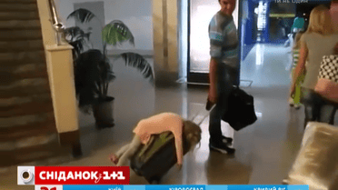 Дівчинка заснула на валізі