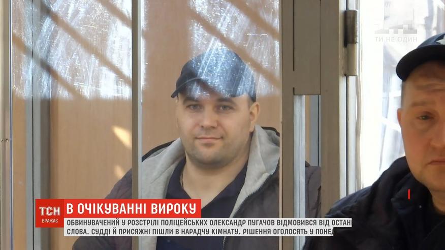 Олександр Пугачов відмовився від останнього слова. Восени 2016 року патрульні наздогнали автомобіліста, що порушив правила дорожнього руху. Той зупинився і розстріляв поліцейських - Артема Кутушева та Ольгу Макаренко.
