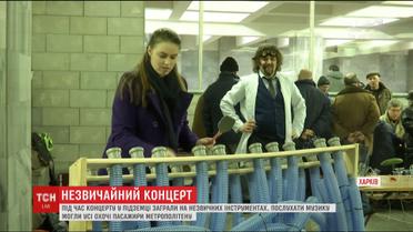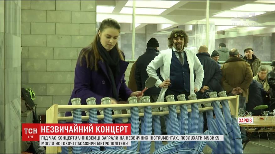 Просто у вестибюлі однієї зі станцій харківського метрополітену звучали рідкісні й унікальні музичні інструменти - прадід сучасних синтезаторів терменвокс, вироблений з каналізаційних труб тубулум та котушка Тесли, яка грала блискавками. Винахідники творили музику навіть з кухонного приладдя й овочів - цей інструмент офіційної назви не має, але здатен відсилати електричні імпульси у комп'ютер та дозволяє створювати цілі музичні композиції.