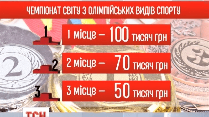 Це рішення Уряду стосується як олімпійських, так і неолімпійських видів спорту. Відтепер за медалі на чемпіонатах світу учасники Олімпійських змагань отримуватимуть сто тисяч гривень за золото, 70 – за срібло й 50 відповідно за бронзу. Переможці та призери чемпіонатів Європи з олімпійських видів спорту за першість матимуть 50 тисяч гривень. Друге місце принесе їм 40 тисяч, третє 25 тисяч.