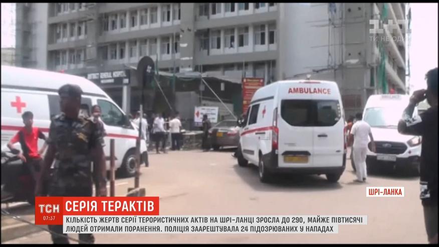 Напередодні вісім вибухів пролунали в церквах та готелях одразу кількох міст, де християни західного обряду святкували Великдень. Майже три десятка загиблих - це іноземці, громадяни США, Британії, Португалії та Нідерландів. У вітчизняному МЗС кажуть, що українців серед них, за попередніми даними, немає. Поліція Шрі-Ланки затримала 24 людини за підозрою у причетності до терактів, за даними медіа, більшість з них належить до однієї радикальної організації.