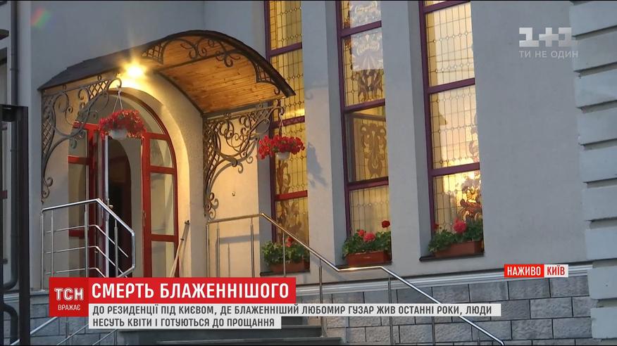 До резиденції блаженнішого Любомира Гузара люди несуть квіти і готуються до прощання