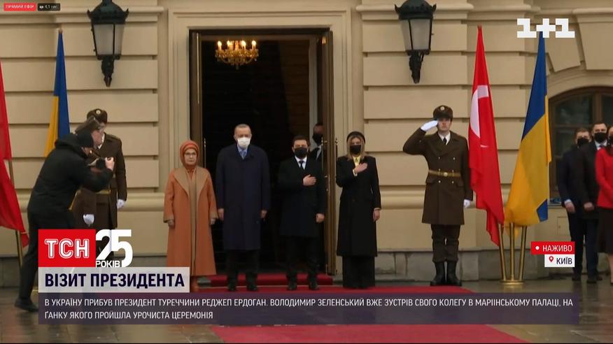 Розпочався офіційний візит президента Туреччини Реджепа Ердогана до України. Церемонія зустрічі відбулась на ганку Маріїнського палацу. По прильоті до Києва Ердоган у Twitter написав, що закликає Україну і Росію до діалогу заради миру у регіоні. Які домовленості можуть бути між Туреччиною і Україною, особливо в контексті загрози з боку Росії – дивіться у прямому включенні.