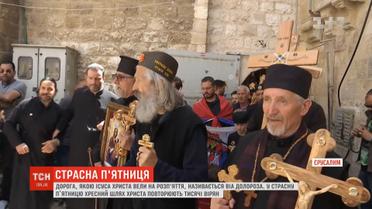 Страсна п’ятниця в православних. Сьогодні згадують страждання Ісуса Христа, якого розіп'яли на Голгофі. Віряни з усього світу з’їжджаються до Єрусалима, аби пронести хрест дорогою, якою вели Ісуса на розп’яття. У багатотисячній хресній ході були й українці.
