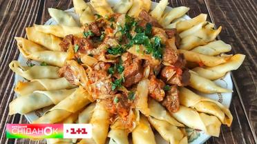 Ситний рецепт домашньої пасти від Валентини Хамайко. Готуємо самі тісто для пасти. А подавати її будемо з м'ясом та тушкованими овочами. Для приготування знадобиться: борошно, вода, яйце, олія, сіль, куряче філе, цибуля, часник, помідор, капуста, сіль та спеції.