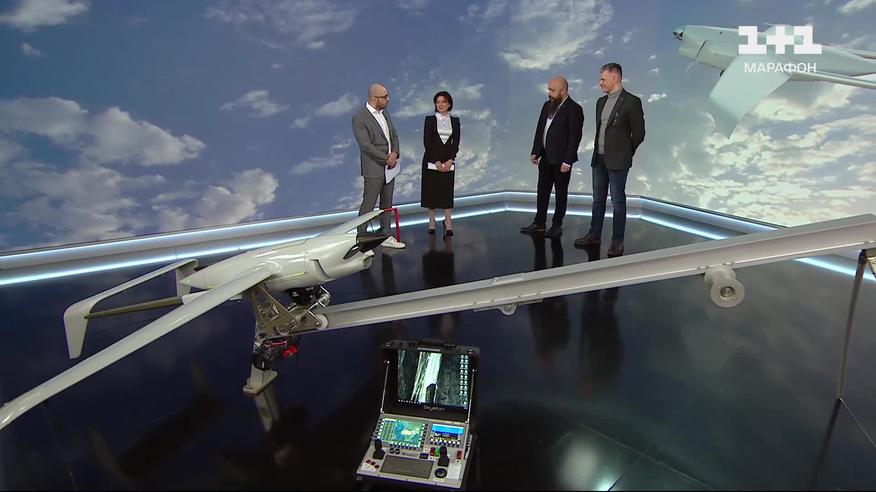 Андрій Фіалковський, генеральний директор Skyeton та Максим Левківський, технічний директор Skyeton показали в ефірі “1+1” український дрон-розвідник, який легко залетить на 2500 кілометрів, щоб зібрати дані і передати бійцям ЗСУ.