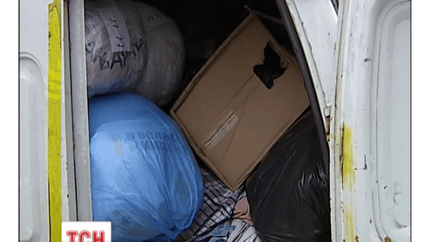 На території Михайлівського собору церковні громади назбирали солодощів для сиротинців Донбасу та одяг для цивільного населення. Для чотирьох мікроавтобусів провели короткий мобелень і освячення.
