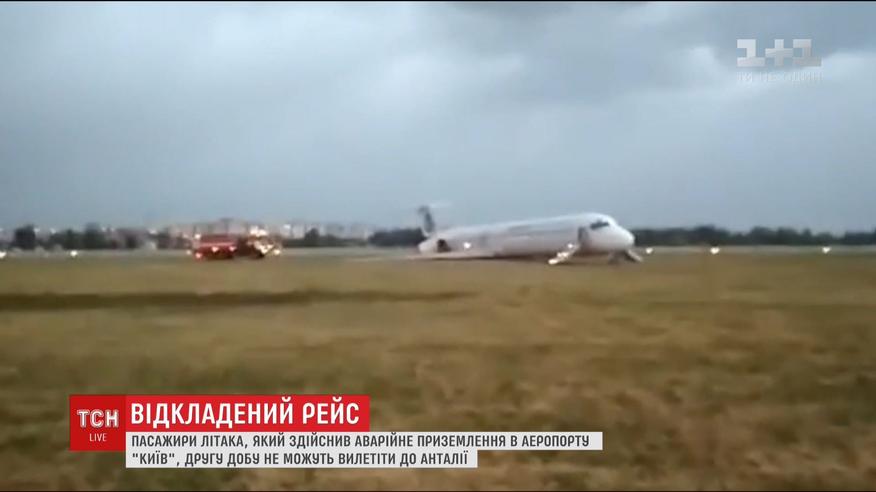 Сотні людей другу добу з різних куточків України не можуть вилетіти в Анталію з аеропорту "Київ". Це пасажири того самого літака, який здійснив аварійне приземлення на летовищі імені Сікорського. В умовах негоди борт не впорався з бурею та зливою і викотився на злітно-посадкову смугу. 169 пасажирів із саднами та забиттями в стані шоку, але всі - живі. Відучора пасажири лишалися в аеропорту, зараз їх розселили по готелях.
