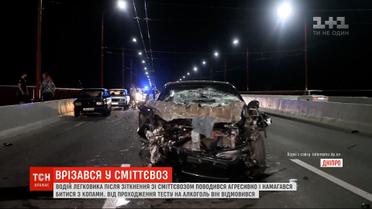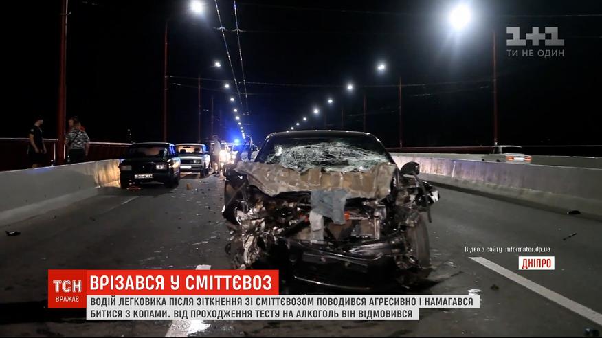 ДТП у Дніпрі: водій влетів у сміттєвоз, а потім намагався побитися з копами