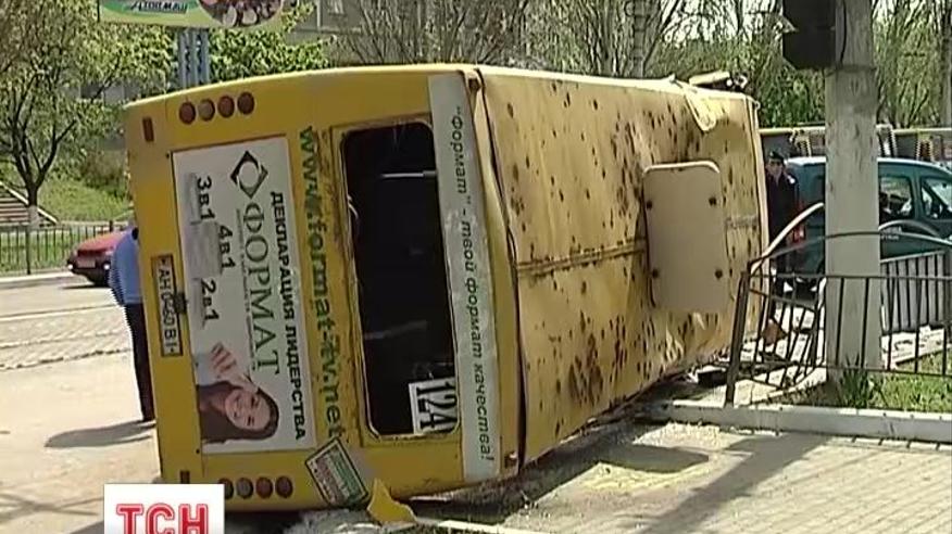 Там у центрі міста перекинулася маршрутка з пасажирами. Водій розігнався на крутому спуску і при спробі об'їхати пішохода на світлофорі не втримав керма. Люди вибиралися з автобуса, розбиваючи вікна.