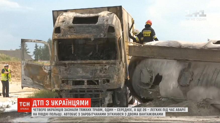 Після аварії у Польщі: четверо українців у тяжкому стані, один у середньому, ще 26 з легкими травмами. Заробітчани їхали в автобусі. Біля міста Богуславіце він зіштовхнувся з двома вантажівками. Як рятували і рятують українців та які останні новини про аварію – у сюжеті.