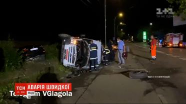 Опівночі в Ужгороді трапилася аварія зі швидкою. Машина екстреної допомоги саме виїздила зі станції на виклик, коли у неї влетіла "BMW". Машина медиків перекинулася. Відео з місця аварії опублікував на своїй сторінці в соцмережі закарпатський журналіст Віталій Глагола. За його повідомленням, водій та четверо працівників бригади швидкої допомоги травмовані. Їх доправили до шпиталю.