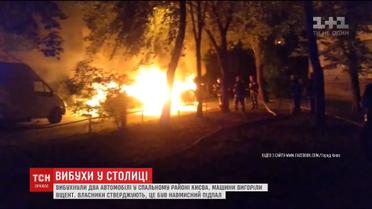 У столиці вдосвіта вибухнули автомобілі. Сталося це у спальному районі Києва. За словами свідків, вони спочатку почули автомобільну сигналізацію, а потім пролунав потужний вибух. Після нього прогримів ще один. По черзі здетонували два автомобілі, які були припарковані на узбіччі. Вони вигоріли вщент. Обидві машини належать одній родині. Ті стверджують, це хтось зробив навмисно. Причини вибуху автомобілів з'ясовують поліцейські.