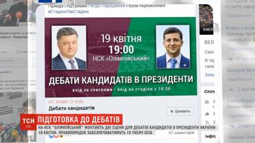 Поки що сторони не узгодили до кінця формат заходу, але вирішили встановити окремі сцени для одного та іншого кандидата. Майданчик Зеленського вже майже готовий. Сцену для Порошенка почали монтувати сьогодні вранці. Розташовані будуть майданчики один навпроти іншого. Між ними фанзона із глядачами.