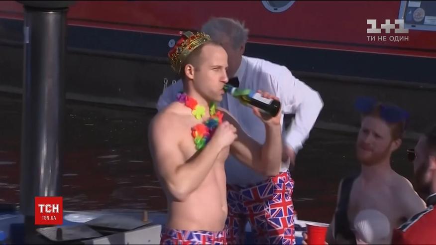 Поки принц Гаррі готується до весілля з акторкою Меган Маркл, його двійник у коротеньких плавках кольорів британського прапора розважався разом із копіями Вільяма та Чарльза. З берега чоловіків проводжала на вечірку жінка-копія Єлизавети ІІ, в білому хутрі та з діамантовою діадемою. Крихітний човен, на радість туристам, курсував каналом у середмісті Лондона.