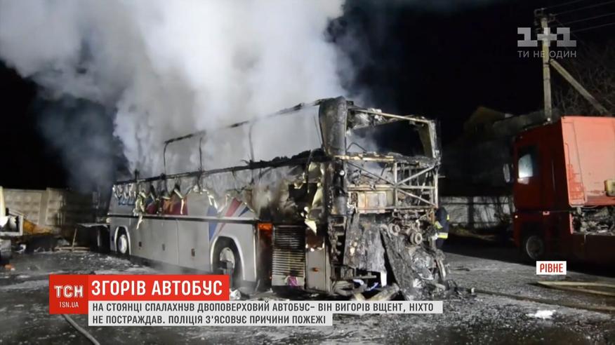 Двоповерховий автобус вщент згорів на автостоянці у Рівному