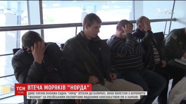 За російськими паспортами, виданими у харківському консульстві федерації. Нордівців у них прикордонники не впізнали, бо російською прізвища були записані інакше, і їх пропустили в київському аеропорту Жуляни на рейс до Мінська. Однак, інших сімох членів екіпажу "Норду", які також намагалися втекти з України літаком, вдалося зупинити. На них склали протокол за спробу незаконного перетину кордону.