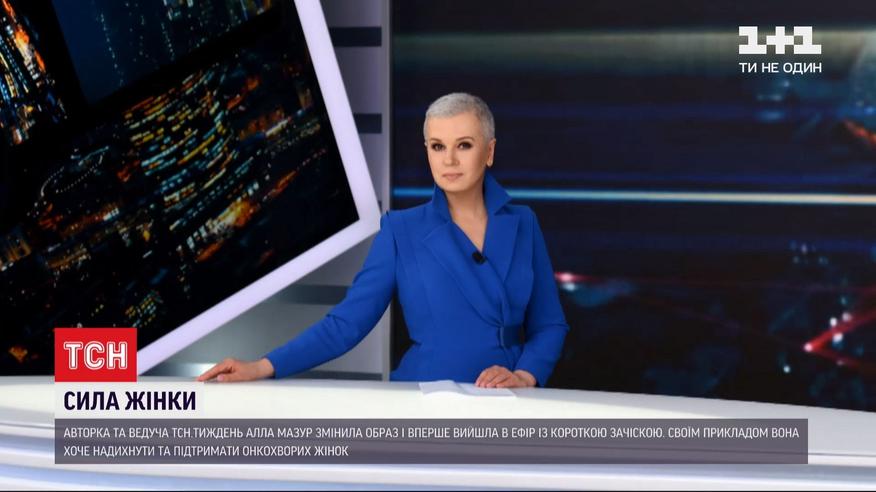 Натхнення для всіх, хто бореться з онкологією. Авторка та ведуча ТСН.Тиждень Алла Мазур вперше вийшла в ефір у новому образі, без перуки. Поборовши хворобу, вона наважилася на максимальну відвертість і з'явилася перед глядачами з короткою зачіскою. Своїм прикладом Алла хоче надихнути інших, прийняти себе і любити себе. Як на новий ефірний образ відреагували телеглядачі – у сюжеті.