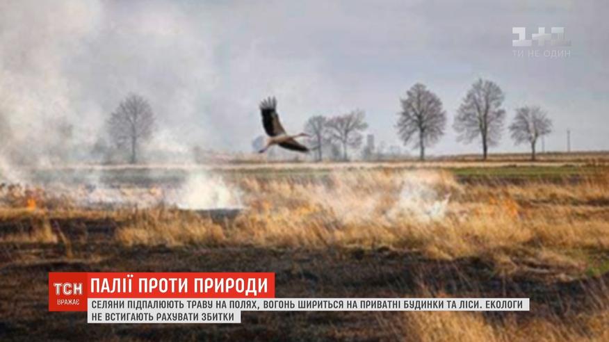 Траву підпалюють, майже не ховаючись. Вогонь йде на сусідні ліси та навіть будинки. Гинуть сотні тварин. Та навіть відповідальності зловмисники не бояться. Бо за це загрожує лиш штраф - від трьох сотень до тисячі гривень.