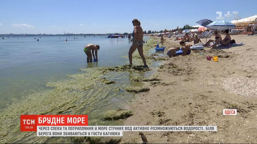 Море в Одесі "цвістиме" щонайменше кілька тижнів, а то й місяць - припускають екологи. Вода на південному курорті стала брудно-зеленого кольору через мікроскопічні водорості. Ближче до берега вони збиваються у густу багнюку. Найбільш забрудені пляжі Аркадії, Лузанівки та прилеглих до Одеси курортних селищ Фонтанка та Крижанівка. Водорості активно розмножуються через спеку та стоки. Очистити воду можуть шторм, холодна течія чи різкий вітер. Відпочивальники намагаються триматися далі від берега – там більше ділянок з прозорою водою. Утім, заходити в море та виходити, кажуть, неприємно.